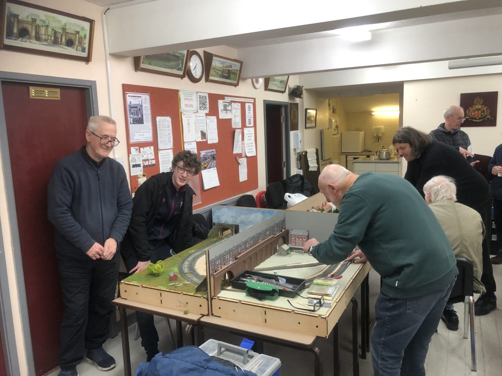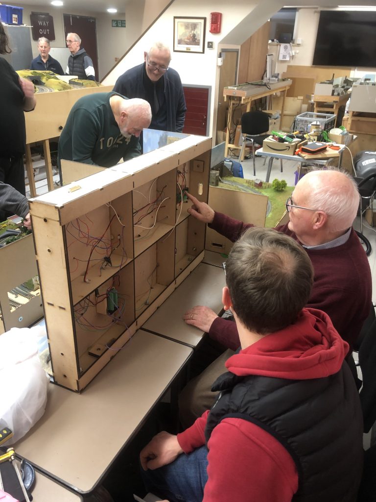 One of our new members is making up a layout now at home and is a complete beginner and we could show him our construction of the boards, the wiring so far, our ballasting and the different scenic details we have made and how we did it. He visited us as we were changing a damaged point and had our boards up on end; so he could see our progress and pick up tips. He immediately signed up for the next soldering course.
