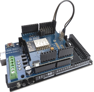 The Arduino Mega needs to be able to communicate with the WiFi board. This is done using the short two wire male/female jumper normally supplied with the WiFi board.